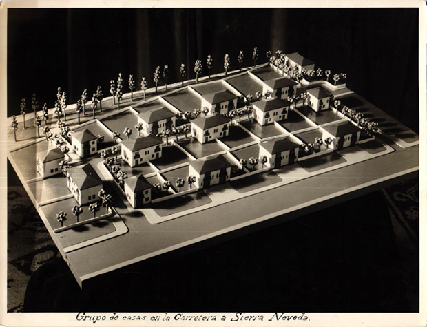 Fig. 2 / Fotografía original de la maqueta de la primera fase del grupo de la carretera de la Sierra, Estudio Fotográfico Torres Molina, 1937. La imagen se reprodujo en el diario Ideal de 7 de noviembre de 1937