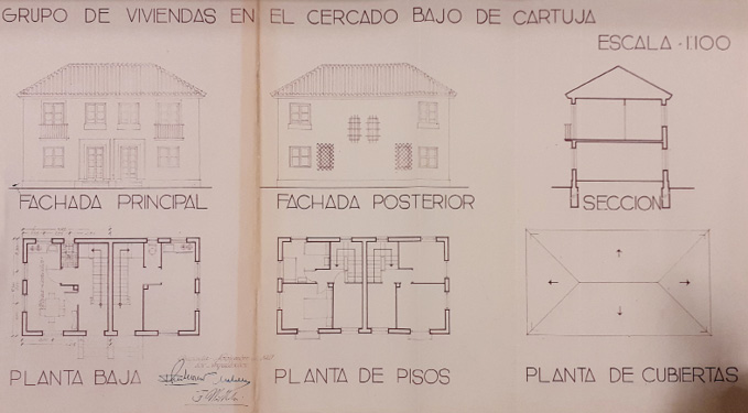 Fig. 6 / Planos de las viviendas pareadas del cercado bajo de Cartuja para cuya construcción se solicitó financiación al Instituto Nacional de la Vivienda (INV), escala 1:100, 1941