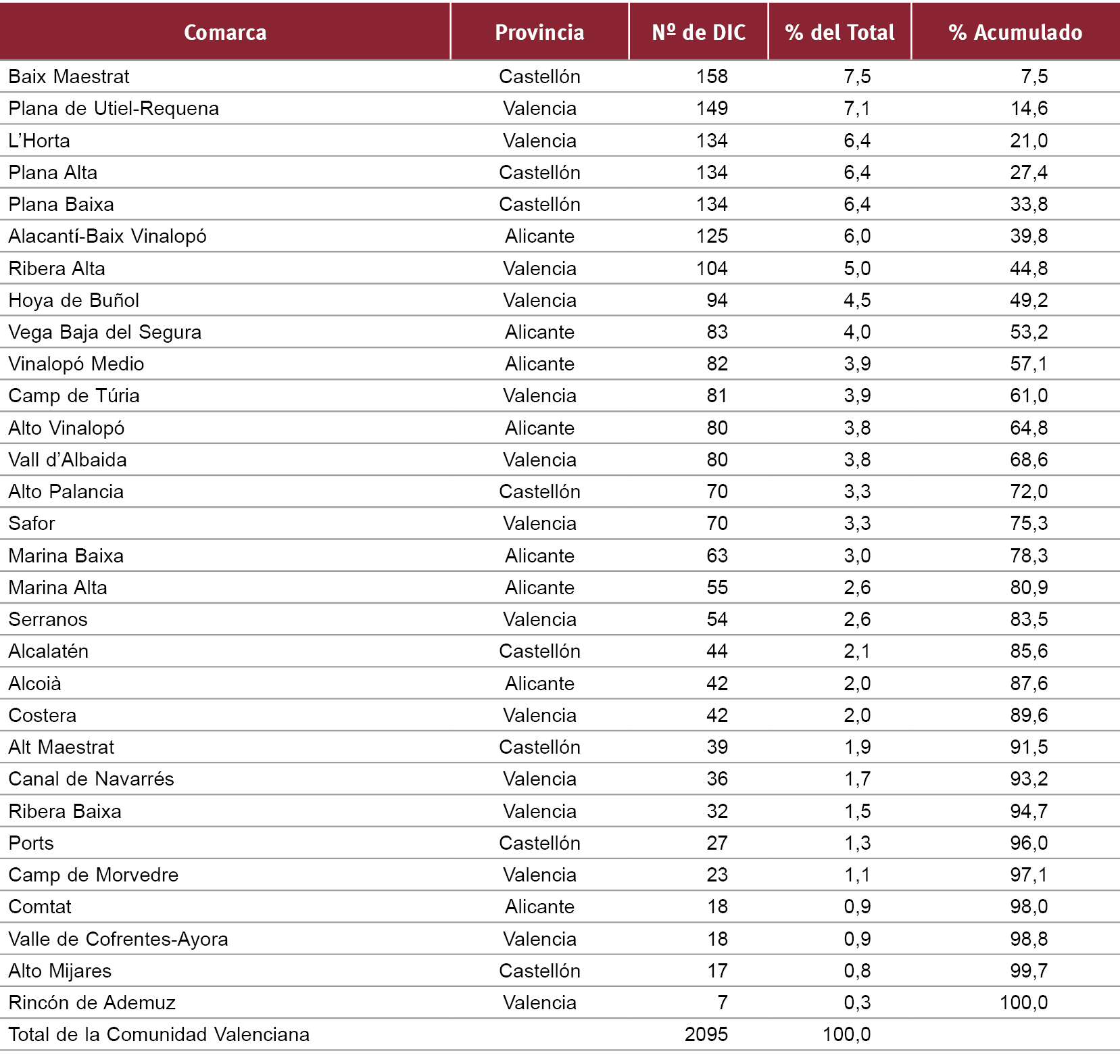 3.2.1. Concentración y dispersión comarcal de los distintos tipos de DIC