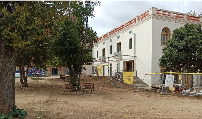 El ejemplo más claro de esto es, sin duda, Can Carol (Fig. 4), la cual los vecinos recuperaron y se apropiaron de ella nombrándola la “Plaza de la Farigola”, la única “plaza” o espacio público de esta naturaleza que existe hoy en día en el antiguo casco de Vallcarca. Actualmente el edificio de la antigua masía ha sido restaurado y convertido en un centro cívico para el barrio, gracias a la acción de los vecinos. Pero existen otros ejemplos de lugares simbólicos que han sido apropiados por los vecinos y recuperados, como la “fustería”, en donde normalmente realizan las reuniones vecinales, o los pequeños huertos urbanos autogestionados que existen en el barrio.