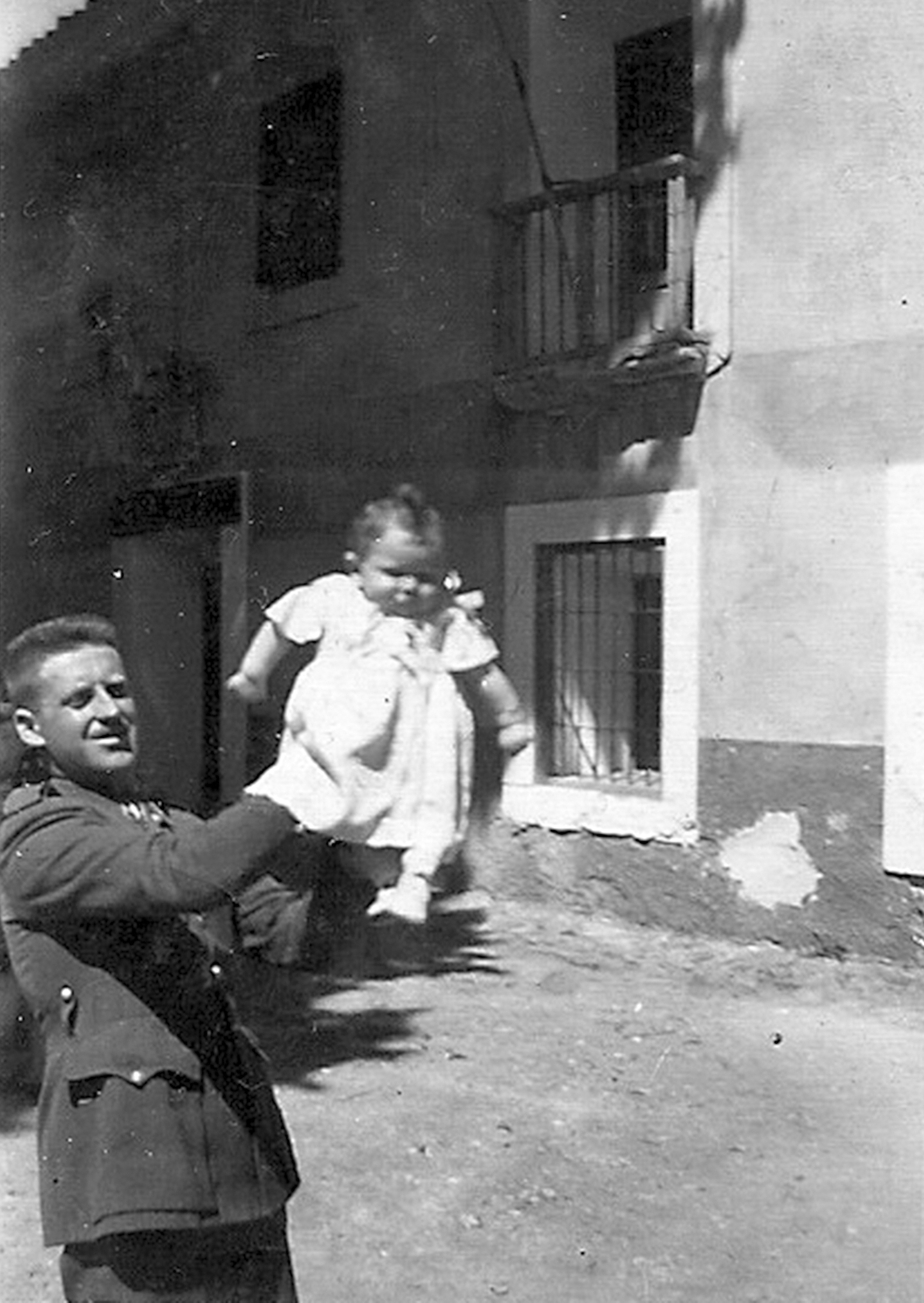Con todo, el matrimonio y la paternidad fueron los acontecimientos clave para formar y transformar las identidades de género de aquellos hombres en la primera década posbélica: si un exitoso matrimonio claramente podía concebirse como la merecida recompensa y descanso tras combatir una guerra, los hijos eran un ulterior trofeo que confirmaba la virilidad demostrada en los campos de batalla y en la esfera sentimental, aunque implicasen un cambio importante en actitudes y autopercepciones (véase la imagen 1)[26]. Estas realidades de la vida cotidiana posbélica, si bien se pudieran integrar fácilmente en los ideales masculinos construidos por el franquismo, no encontraron un claro acomodo en el agresivo discurso propagandístico falangista, sobre todo en el contexto coetáneo de declive y derrota del fascismo en Europa. En la segunda mitad de los años cuarenta, el ideal de masculinidad excombatiente franquista prácticamente desapareció del espacio público. Ciertamente, más que el modelo varonil basado en el horizonte del «descanso del guerrero» que había predominado en la primera posguerra, el ideal de padre trabajador, bueno, católico y piadoso armonizó más con el subsiguiente contexto histórico, y con las realidades cotidianas de una generación de hombres habitualmente angustiados por las incertidumbres económicas y por el deber de sacar adelante a los hijos apenas nacidos[27]. A veces, causaba rubor a esos hombres «conocer el precio del aceite, de las lentejas, del pan, de las patatas», porque esa «cultura de ama de casa», que se veían obligados a portar con ellos a las conversaciones entre hombres en «los casinos, los cafés» y espectáculos, era impropia de su «masculina condición»[28]. Con todo, elementos de esa anterior masculinidad «guerrera» nunca desaparecieron sin más.