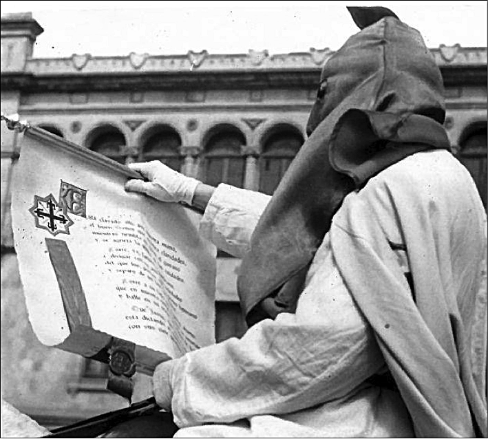 de pregoneros montados con capirotes y capas quienes anunciaban el sermón por la ciudad,
