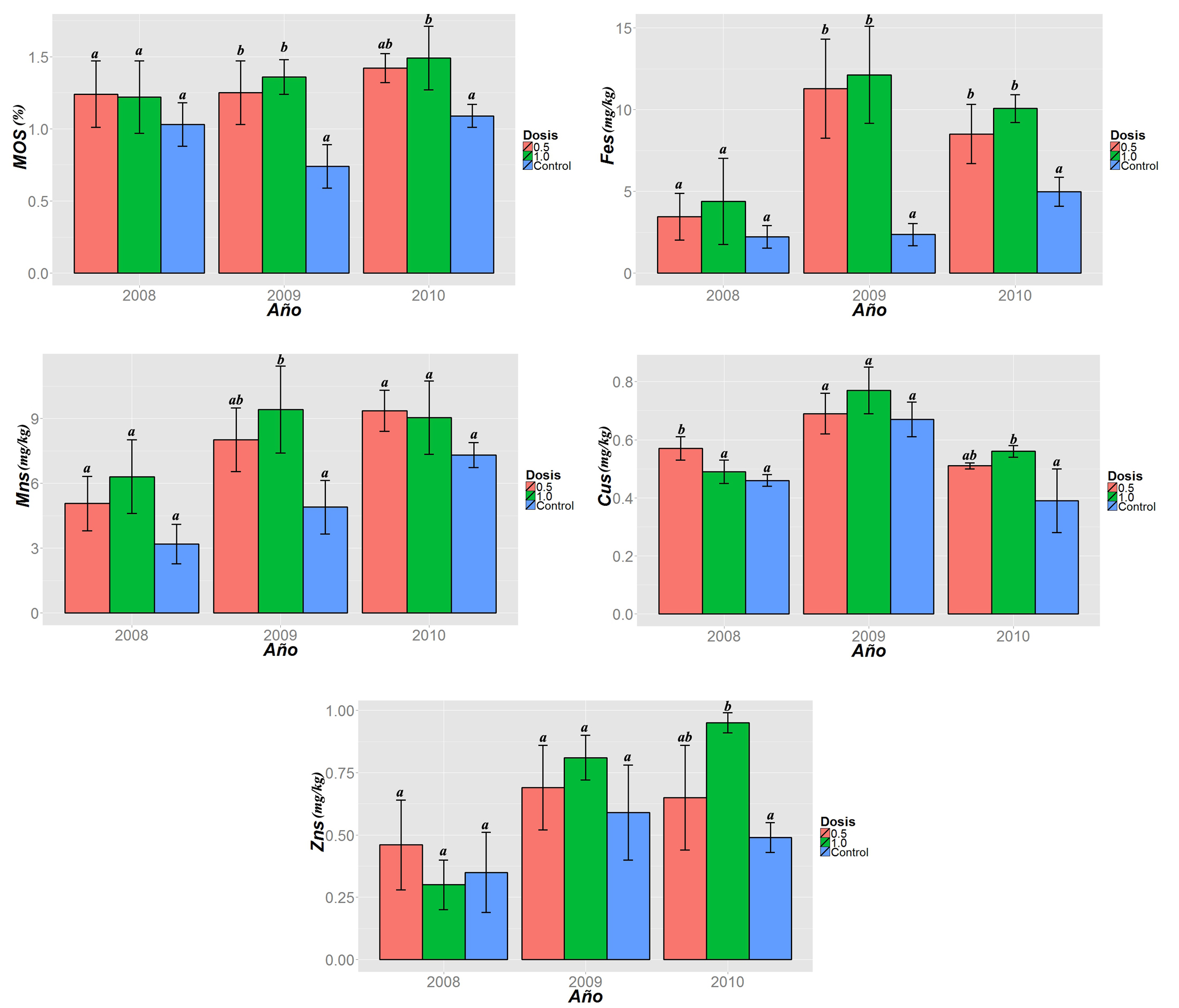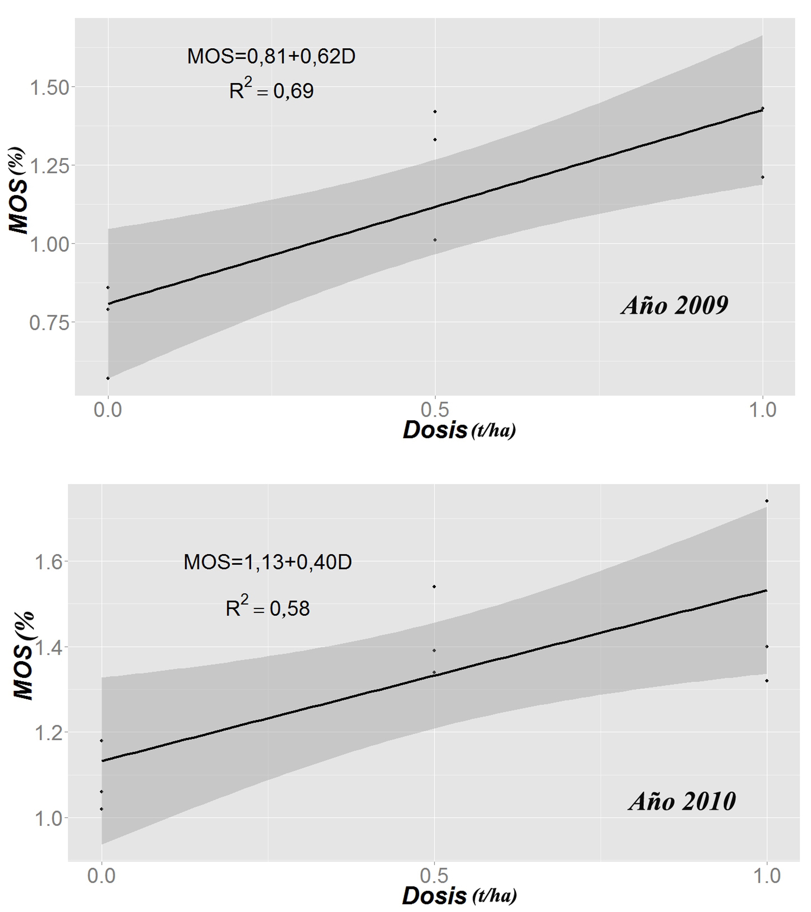 La materia orgánica del suelo, es un componente esencial del suelo, influyendo en el estado y el funcionamiento de otras propiedades del suelo. El principal objetivo de este trabajo, ha sido desarrollar un modelo predictivo para la recomendación de enmiendas orgánicas en suelos básicos de viñedo. Una leonardita, la Humita-40®, ha sido empleada a dos dosis: 500 y1000 kg ha-1. Cinco propiedades del suelo, a saber, materia orgánica del suelo, así como las concentraciones de hierro, manganeso, cobre y zinc han sido monitoreadas en dos profundidades del suelo (0-30 y 30-60 cm) durante tres años. La asociación entre las propiedades del suelo ha sido investigada mediante el análisis de la matriz de correlaciones. De acuerdo a los resultados del ANOVA factorial, la materia orgánica del suelo está condicionada por la dosis de Humita-40®. No obstante, el efecto dosis no ha sido modulado por la profundidad del suelo. En consecuencia, ha sido propuesto un modelo lineal para realizar recomendaciones de aplicación de leonardita en suelos básicos de viñedo.Archivos adicionales