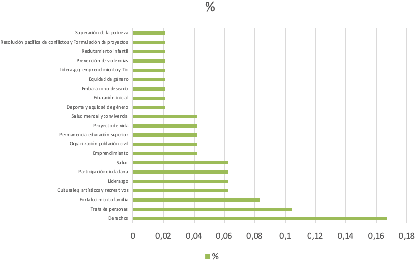 Este enfoque de equidad de género, es complementado con intervenciones socioeducativas que responden a un contexto de riesgo para las mujeres especialmente marcado en el ámbito doméstico, siendo más frecuentes los programas destinados a la prevención de violencia intrafamiliar y violencia contra la mujer dentro de las planeaciones departamentales; seguidos por aquellos destinados a la violencia sexual y otras violencias relacionadas con factores de riesgo regionales como explotación laboral, sexual, violencia física y psicológica, que apuntan a la prevención de la presentación de este tipo de violencias en niños, niñas y adolescentes.