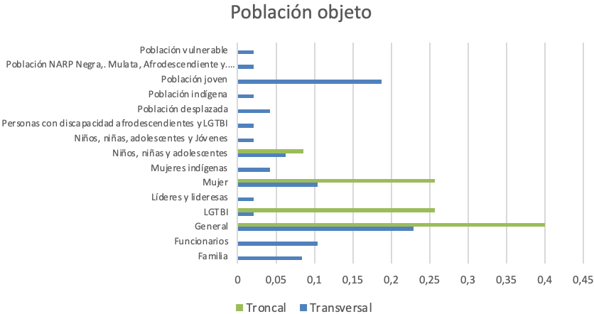 La forma en cómo se operacionalizan de cara a la intervención con las poblaciones presenta gran diversidad, dejando entrever una planeación de abordaje directo basado en mecanismos de intervención socioeducativa de tipo activista, mientras que el abordaje transversal suele evidenciar intervenciones de tipo estructural.