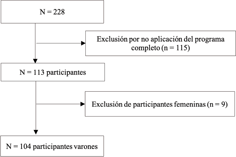 Los criterios de inclusión para la presente investigación fueron: a) Encontrarse cumpliendo una medida judicial de internamiento por la comisión de al menos un delito; b) tener una comprensión básica del idioma español; c) haber asistido al programa de intervención para promover las relaciones igualitarias y haberlo completado en su totalidad; y d) ser varón.