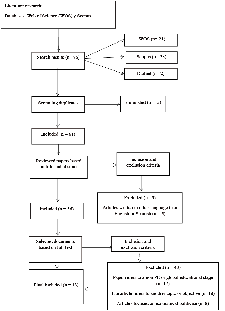 The studies on these programmes were intended to provide educational innovation. Therefore, at the beginning of this study, criteria were established for the inclusion and exclusion of documents to ensure an adequate selection of sources, as shown in Table 1.