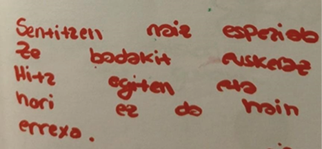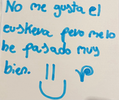The sociolinguistic dimension emerged spontaneously in the interviews and in 35 participant notebook entries. One boy remarked: “We have to try to make sure Basque does not suffer anymore, nor any other small language”. Another reflected on Wolof: “I had never played or thought about anything from my own language”, due to his family’s concern that he might forget his own language when learning Basque.