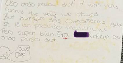 Within this framework, emotional expressions in the L1 and L2 languages of participants were explored, with new ones created in Basque when literal translations were unsuitable, and familiar ones adopted for use in games. Children and adolescents were encouraged to move between languages to reduce communicative anxiety and foster motivation and attachment to Basque. This allowed them to progressively incorporate the language into their interactions with peers and the educational team.