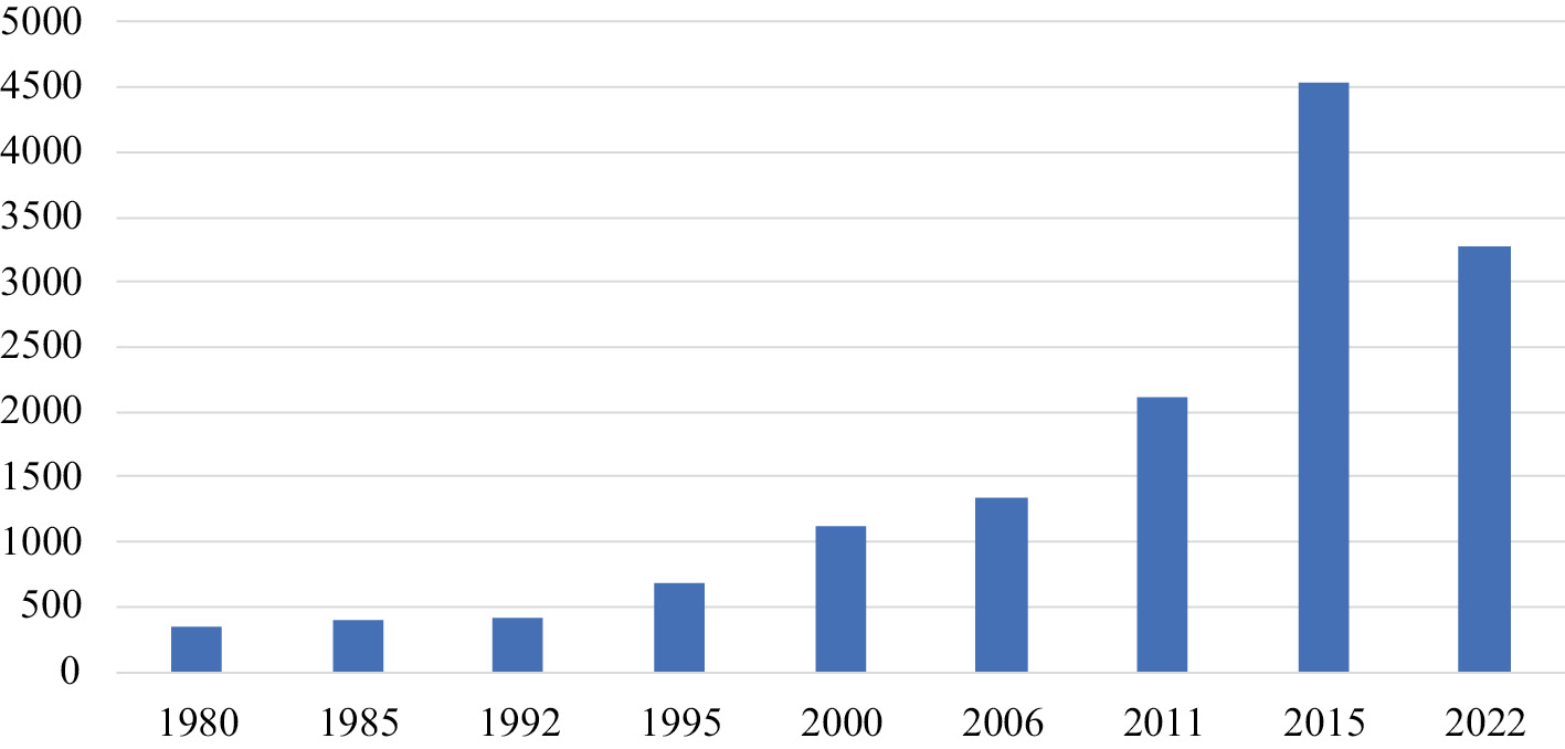 Esta pregunta suele formularse, en el terreno coloquial, de manera muy simple y directa: cuántas leyes hay en vigor en España en el momento actual, se pregunta la gente. Con la típica falta de rigor que nos caracteriza en ocasiones a los juristas, algunos han respondido a ojo, aventurando cifras muy abultadas (para algunos ascienden a doscientas o trescientas mil). Algún autor ajeno al mundo jurídico (Juan Mora-Sanguinetti, economista del Banco de España) se ha atrevido incluso a lanzar una cifra sumamente precisa, referida a la totalidad del ordenamiento jurídico: a su juicio, en el período comprendido entre 1979 y 2021, el conjunto de las instituciones públicas españolas aprobó exactamente 411 804 normas nuevas, cifra que comprende las disposiciones de rango reglamentario (Mora-Sanguinetti, 2022). No voy a discutir esa cifra, porque el autor no indica sus fuentes ni su método de cálculo. Pero, con todo respeto, me permito dudar de su fiabilidad, no solo porque un cálculo de tal exactitud requeriría una investigación analítica de una minuciosidad difícilmente alcanzable, sino porque es dudoso que todas las disposiciones que se han publicado en la sección primera del Boletín Oficial del Estado tengan naturaleza normativa. La realidad impone un objetivo mucho más modesto y asequible, que consiste en saber cuántas leyes (estatales) se han dictado a lo largo de un determinado período histórico.