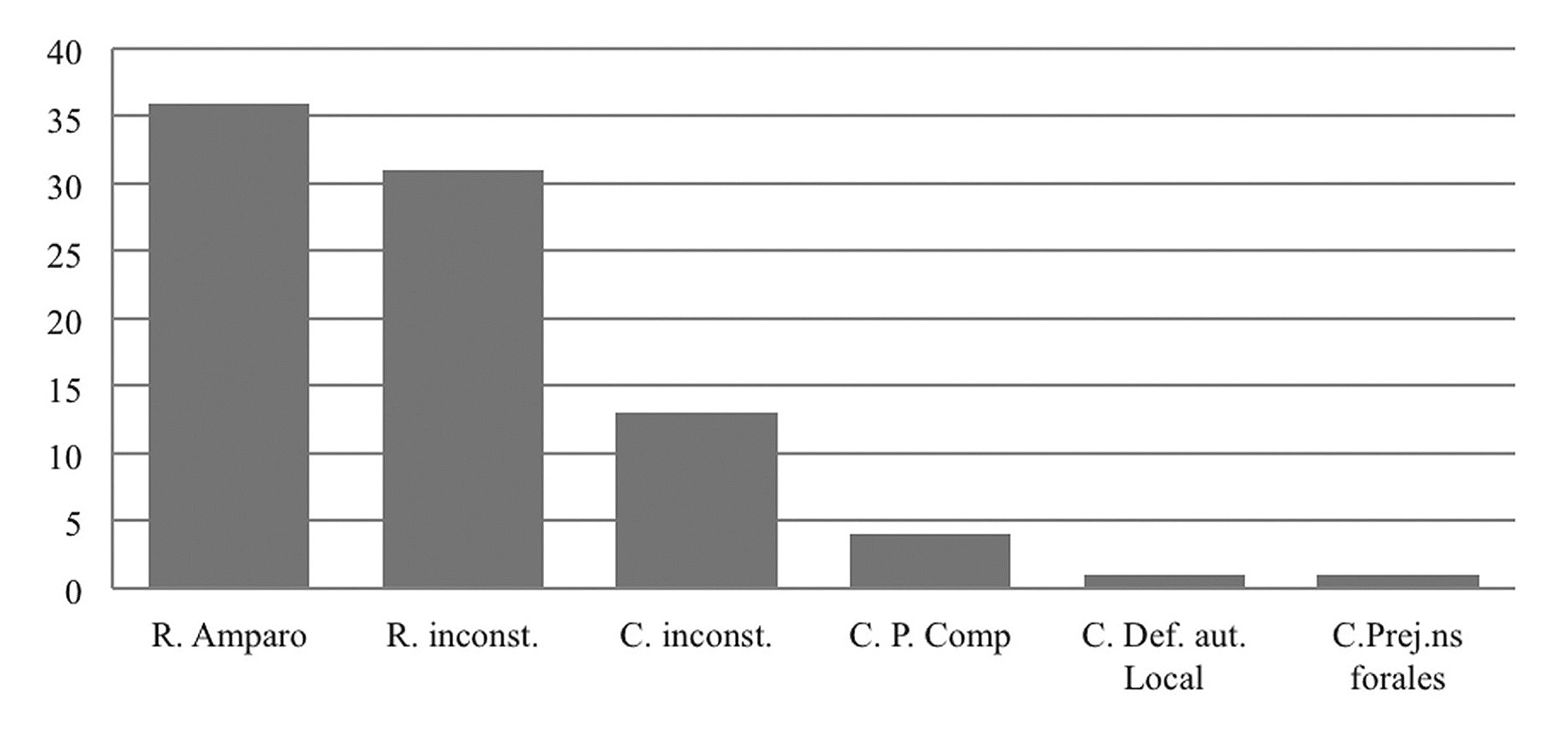 F) El número de sentencias dictadas en recursos de amparo ha sido de 36: