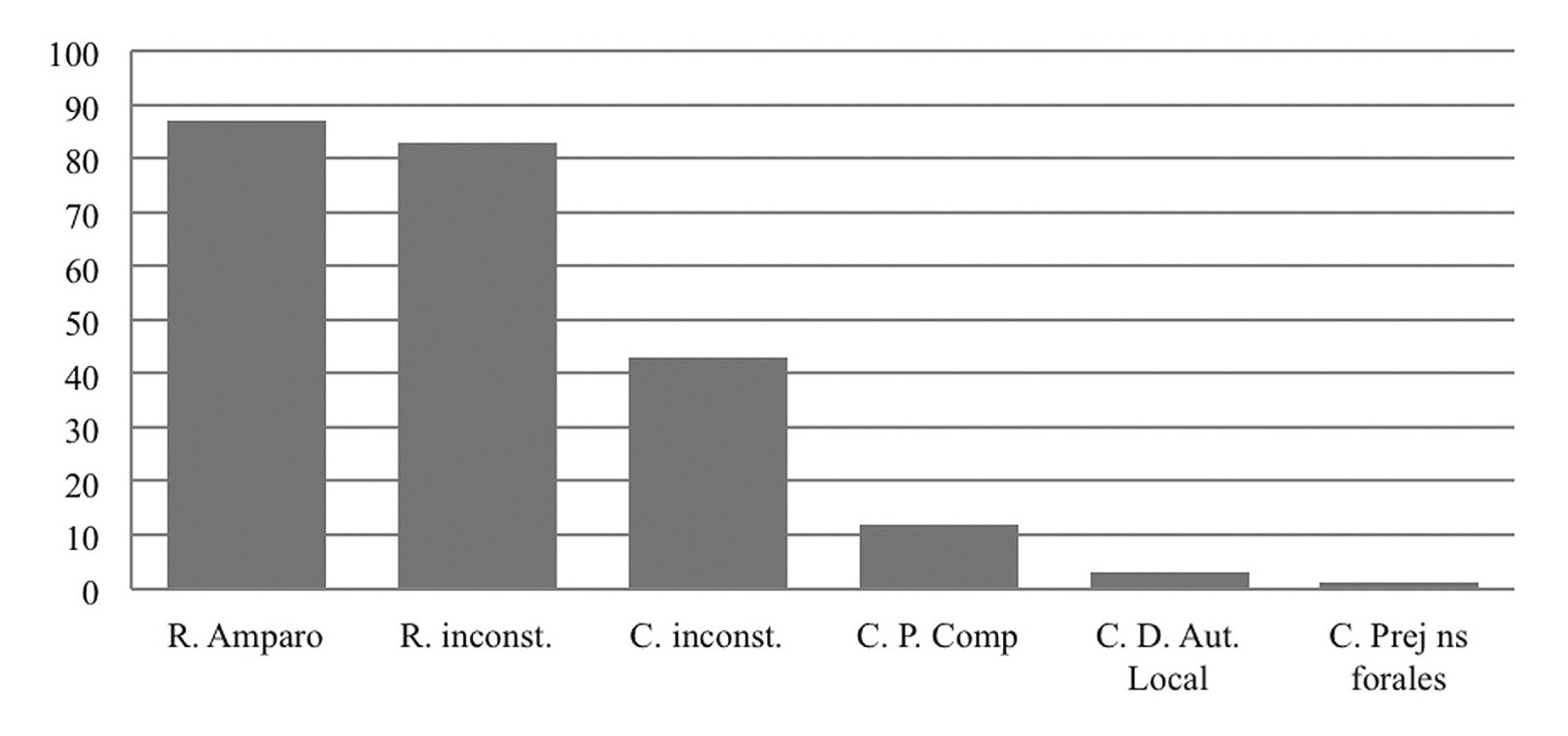 A) Las sentencias dictadas en recursos de inconstitucionalidad son treinta y una: