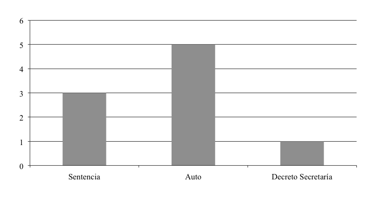 | Órgano | Sentencia | Auto | Decreto de Secretaría | Providencia |