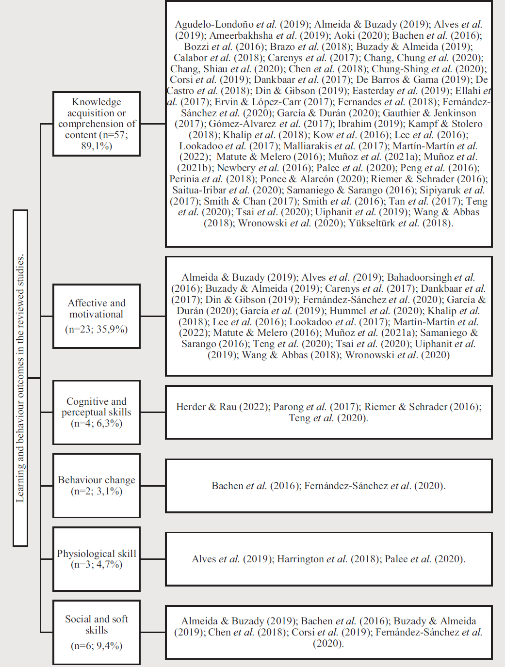 FIGURE V. Learning and behaviour outcomes in the reviewed studies