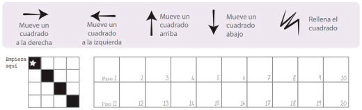 En esta actividad los participantes debían escribir individualmente las instrucciones necesarias que teóricamente debería seguir un programa para colorear una cuadrícula. La Figura III muestra un ejemplo de esta actividad: