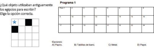 Las habilidades desarrolladas con esta actividad son principalmente la cooperación y el pensamiento crítico. Para vincular esta actividad con la asignatura de Historia y Ciencias Sociales, los participantes debían contestar una serie de preguntas propuestas, como se puede ver en la Figura IV. Así, la opción de colorear la casilla se reemplazó por escribir la opción correspondiente a la pregunta realizada. La Figura IV muestra un ejemplo en el que dos respuestas son correctas: