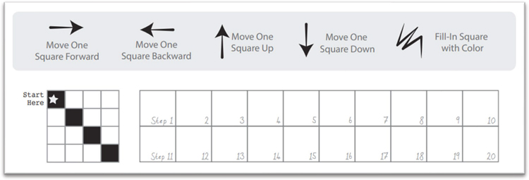 The first unplugged session consisted of two activities whose objective was to introduce pre-service teachers to programming concepts. The first activity was called “Graph Paper Programming” and it was adapted from the website Code.org. The aim of this activity was to work on basic concepts such as sequences and algorithms. The abilities developed with this activity were problem solving and algorithmic and critical thinking and the objectives pursued were: