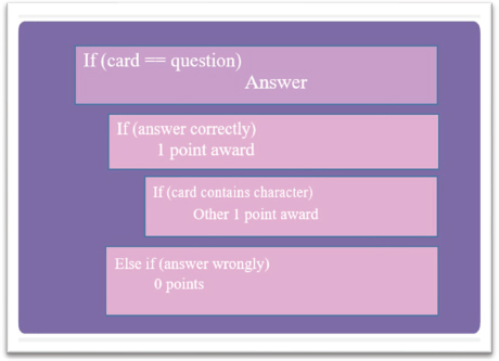 The second activity of this second session aimed to work the concept of “conditionals” in programming. For that purpose, a card game related with history concepts was designed. The participants needed to create their own rules with the cards given. However, the instruction should be written using blocks programming language. The objectives that this activity followed were: