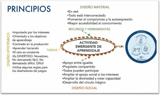 Posteriormente, el enfoque pedagógico del DALI se formuló sobre la base del Aprendizaje Conectado (Networked Learning). La adhesión a los principios del aprendizaje conectado implica considerar el desarrollo de competencias como una actividad emergente que prioriza el protagonismo del estudiante en el proceso de aprendizaje. Esta perspectiva enfatiza el aprendizaje expansivo, la reflexividad y el compromiso compartido entre los participantes, fomentando un potencial dinámico distintivo (Networked Learning Editorial Collective (NLEC), 2020). Además, se usó el marco del Análisis y Diseño Centrados en la Actividad (ACAD, por sus siglas en inglés Activity Centered Analysis and Design) (Goodyear et al., 2021) para organizar y analizar los componentes del diseño, reconociendo que este enfoque incorpora principios del Aprendizaje Conectado para crear nuevos escenarios que consideren las realidades sociales y materiales de los estudiantes, abarcando sus necesidades, intereses y culturas (Ito et al., 2020).