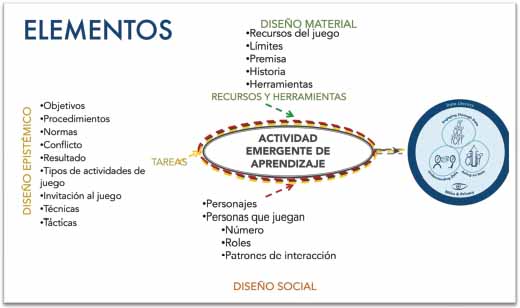 Además, para facilitar la co-creación de las 10 propuestas y diseños de GBNLS, mapeamos cada elemento de diseño de ACAD, abarcando todos los posibles elementos de diseño de juegos (véase la Figura V).
