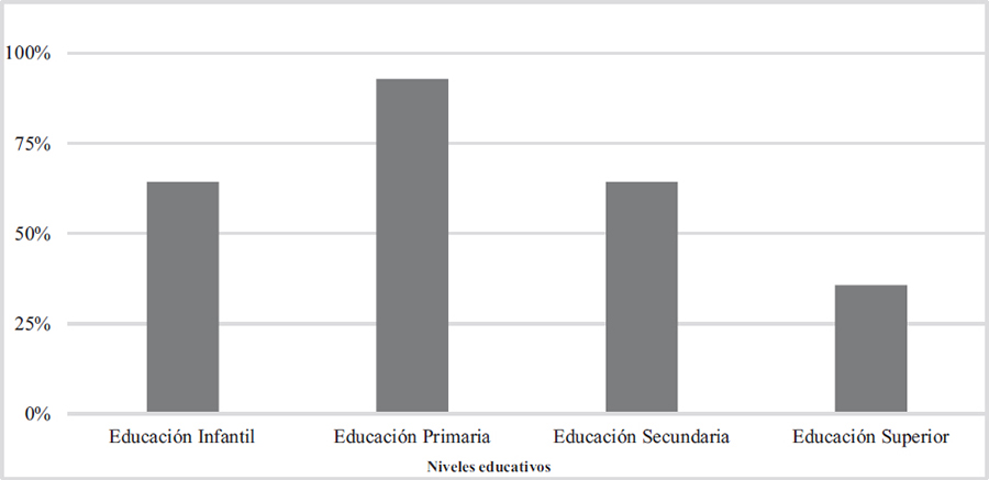 En consonancia con otros análisis (Fontal y Martínez, 2017), los destinatarios de lo desarrollado en el contexto formal son en un 92,9% el alumnado de primaria. El porcentaje en infantil y secundaria coincide (64,3%), pero es algo menor, lo que evidencia una falta de interés o dificultad por incorporar el PCI en los niveles más iniciales o finales de la educación obligatoria. En este sentido, el equipo docente sostiene la necesidad de iniciativas, materiales y formación patrimonial para todos los niveles (Castro y López, 2019). En lo que concierne al rango universitario, los programas analizados solo están presentes en los citados métodos de aprendizaje húngaros, que involucran todos los grados y edades, y en tres iniciativas que ofrecen actividades y cursos en universidades o centros de formación profesional (Cancillería Federal de Austria, 2016; Ministerio de Cultura y Democracia de Suecia, 2018; Ministerio de Cultura de Colombia, 2019).