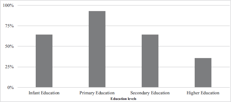 In line with other analyses (Fontal & Martínez, 2017), 92.9% of the recipients of what is developed in the formal context are primary school pupils. The percentage in pre-primary and secondary education coincides (64.3%), but is somewhat lower, which evidences a lack of interest or difficulty in incorporating ICH at the earliest or final levels of compulsory education. In this sense, the teaching team supports the need for initiatives, materials, and heritage training for all levels (Castro and López, 2019). As far as university level is concerned, the analysed programmes are only present in the aforementioned Hungarian learning methods, which involve all grades and ages, and in three initiatives offering activities and courses at universities or vocational training centres (Austrian Federal Chancellery, 2016; Swedish Ministry of Culture and Democracy, 2018; Colombian Ministry of Culture, 2019).