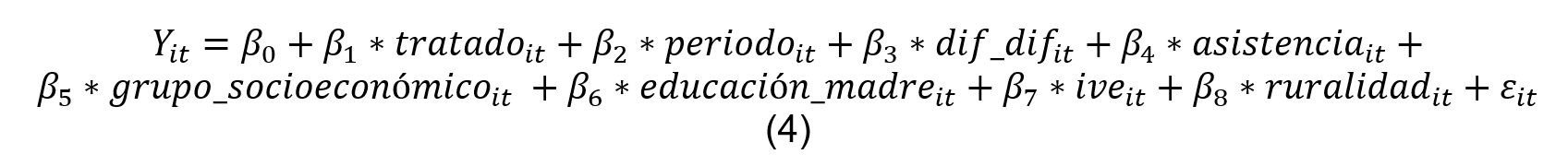 El modelo general para estimar la doble diferencia corresponde a una Regresión Múltiple, teniendo la siguiente estructura: