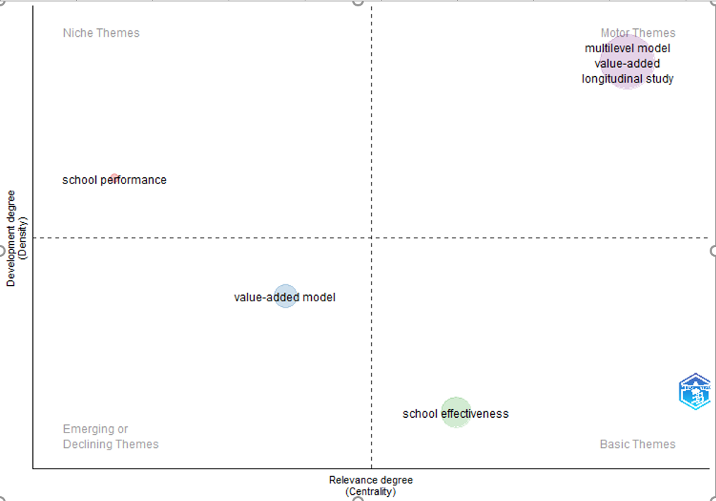 As observed in Figure X, the first period of research is marked by themes like multilevel model, value-added and longitudinal study as motor themes, it also includes school performance as niche theme. While in period 2, includes educational quality evaluation,