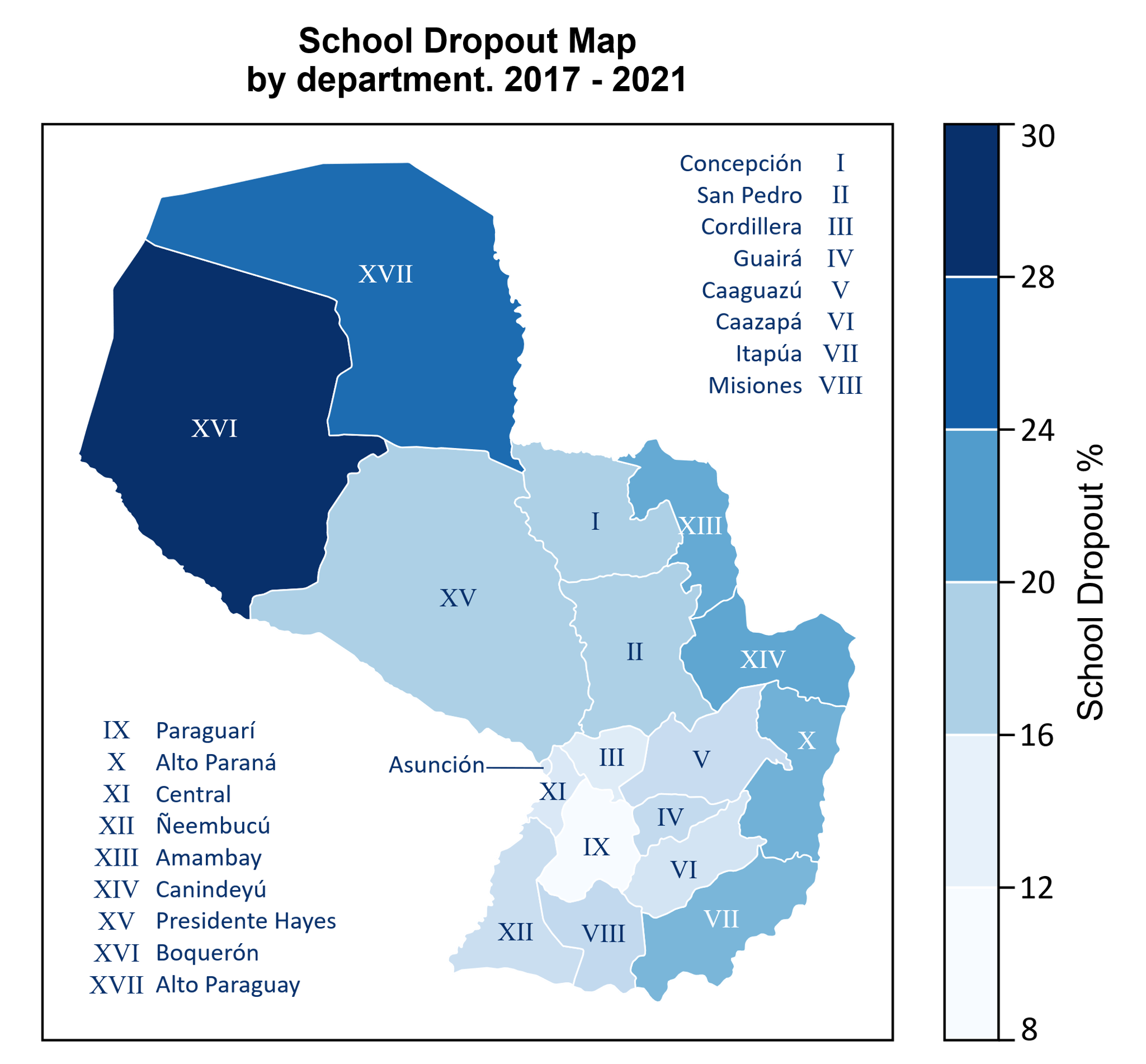 In sum, this paper contributes to the understanding of dropout in secondary education in Paraguay and Latin America, demonstrating the potential of data analytics for informing education policy. Implementing these recommendations and strengthening information systems may enhance the responsiveness of education authorities, leading to improved student retention and completion rates.