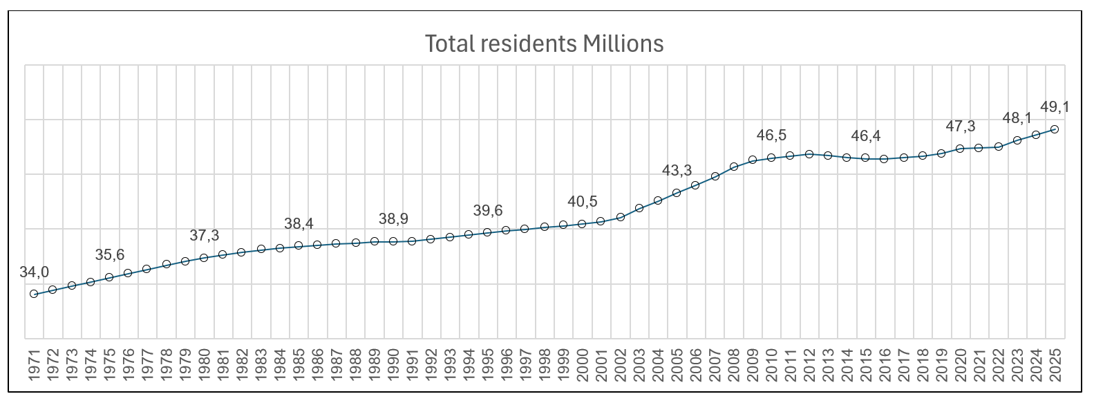 FIGURE C1.1. Resident population in Spain. Millions