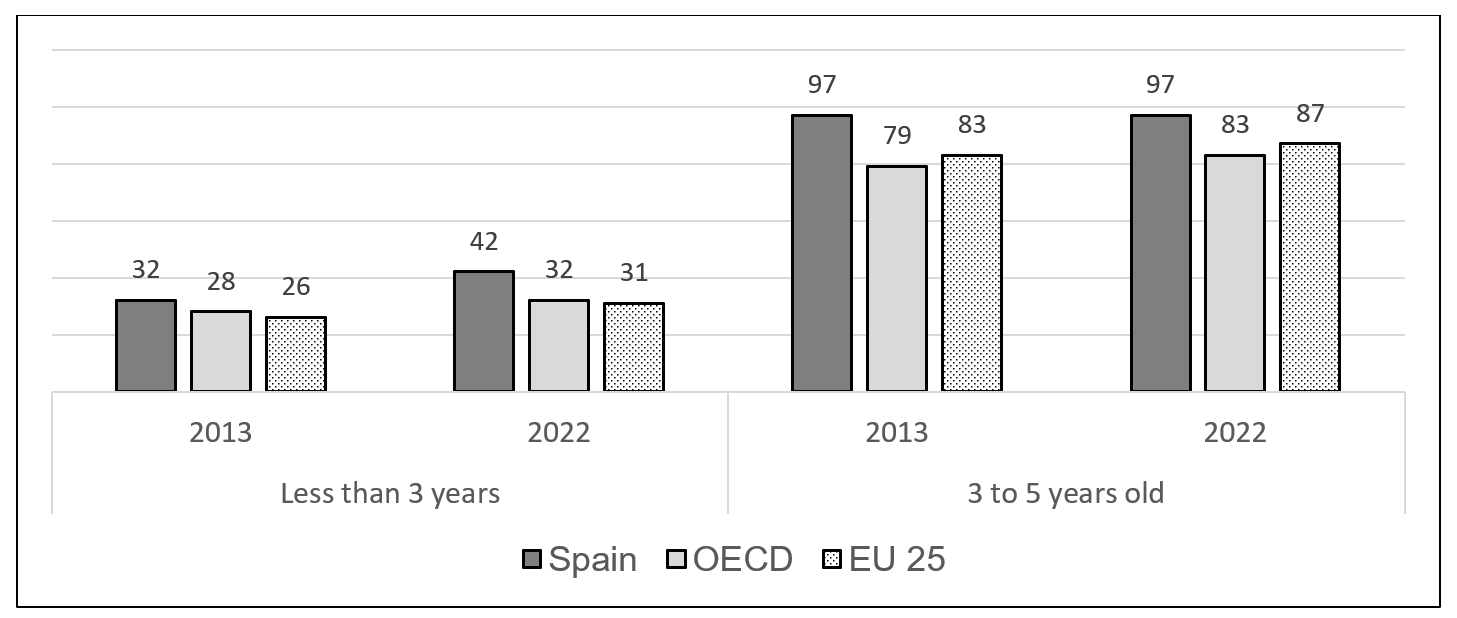 FIGURE E2.2. Comparison of child schooling in Spain, the OECD and the EU