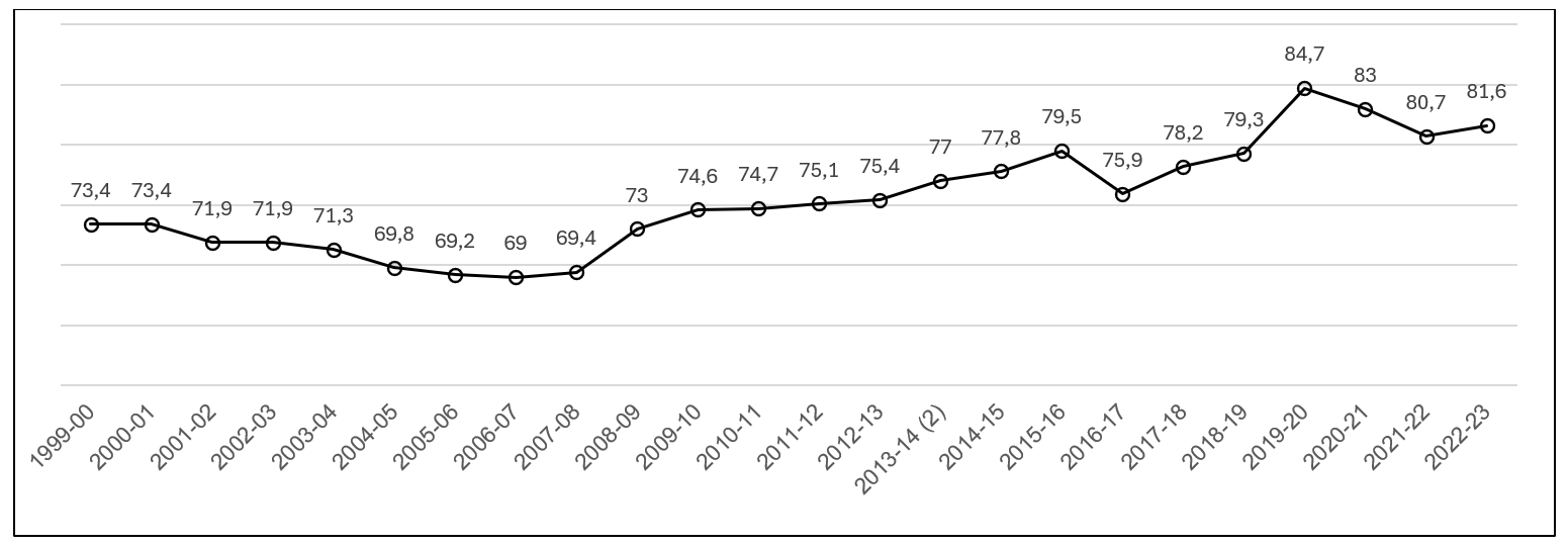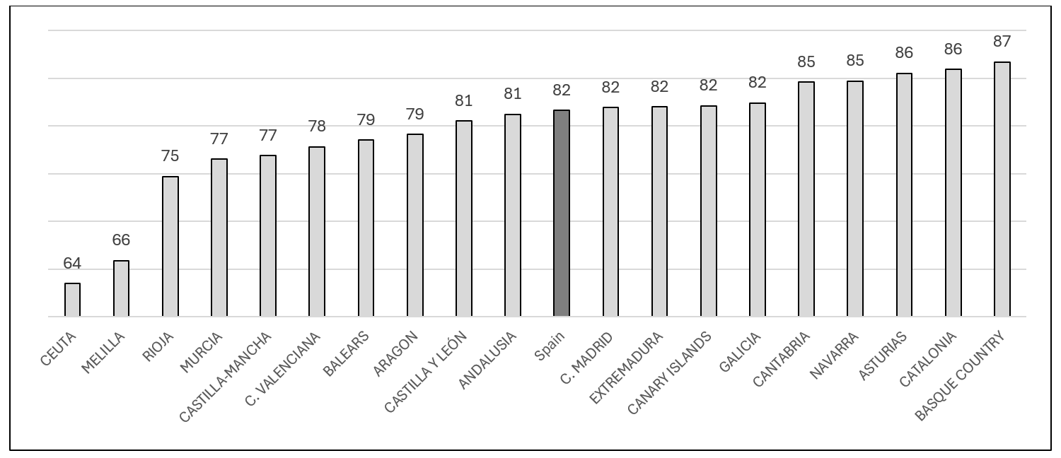 FIGURE E3.2. Net schooling rate at age 17. Spain
