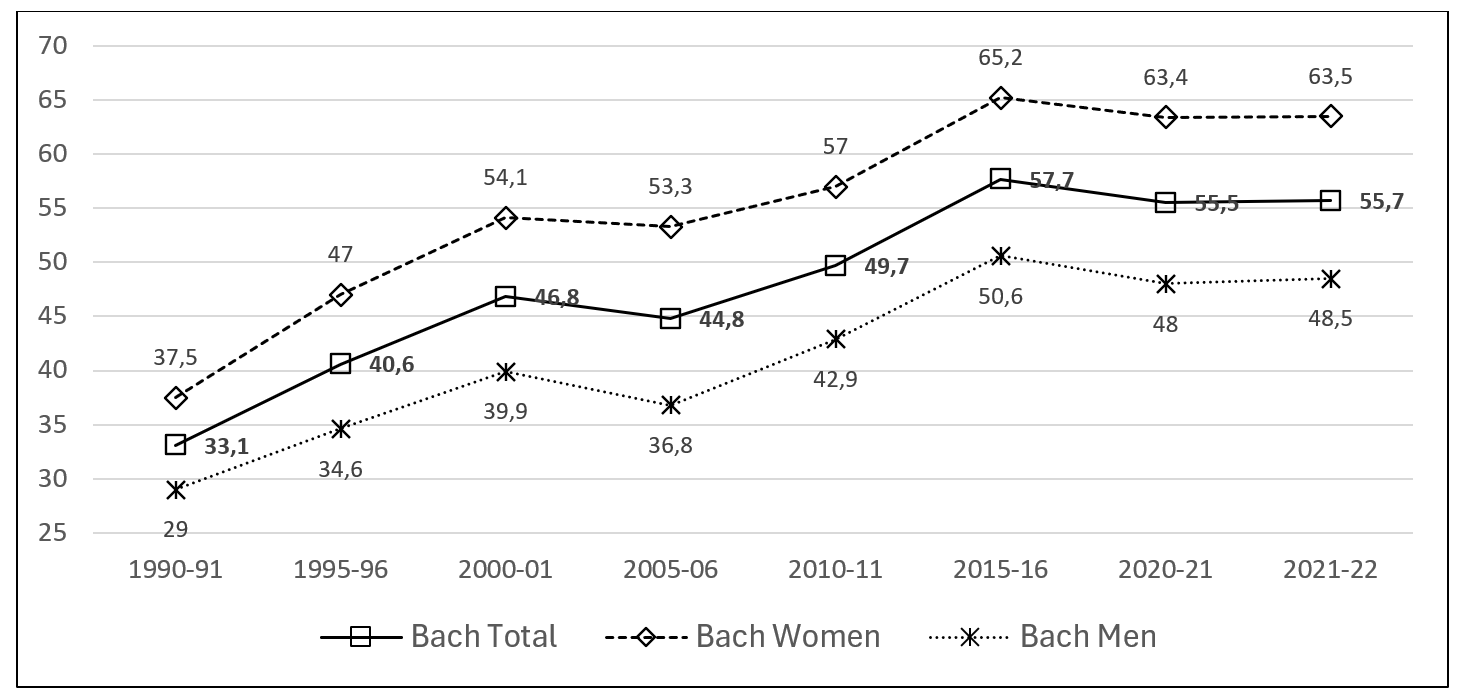 From 1990 to 2022, MEFP. Educa base (2024b). Subdirección General de Estadística y Estudios del MEFPD.