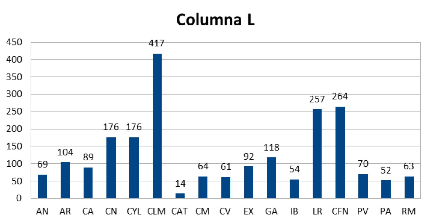2(2) Las siglas utilizadas en el texto se corresponden con: AN=Andalucía; AR=Aragón; CA=Canarias; CN=Cantabria; CYL=Castilla y León; CLM=Castilla-La Mancha; CAT=Cataluña; CM=Comunidad de Madrid; CV=Comunitat Valenciana; EX=Extremadura; GA=Galicia; IB=Illes Balears; LR= La Rioja; CFN=Comunidad Foral de Navarra; PV=País Vasco; PA=Principado de Asturias; RM=Región de Murcia.