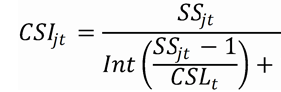 We describe in what follows the creation of a class size instrument which will intend to solve the previously described potential non-random allocation of students to classes. In this case, the proposed instrument is the class size that schools should have set when their school size reached the class size limit indicated by the class size law, thus randomly distributing students in equal-size classes. In order to obtain this instrument, we followed Angrist and Lavy (1999) and calculated: