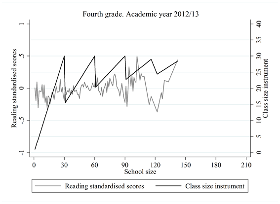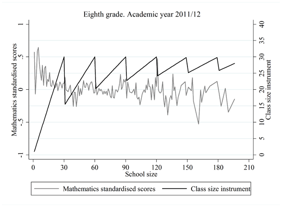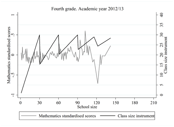 FIGURE 3. Relationship between the class size instrument and mathematics standardised administrative scores