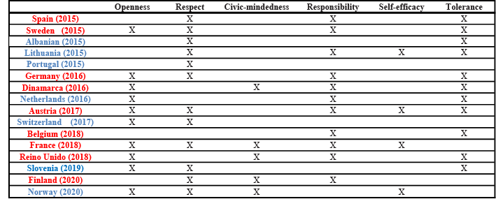 TABLE III. Inclusion of attitudes analysed in documents issued by European governments.