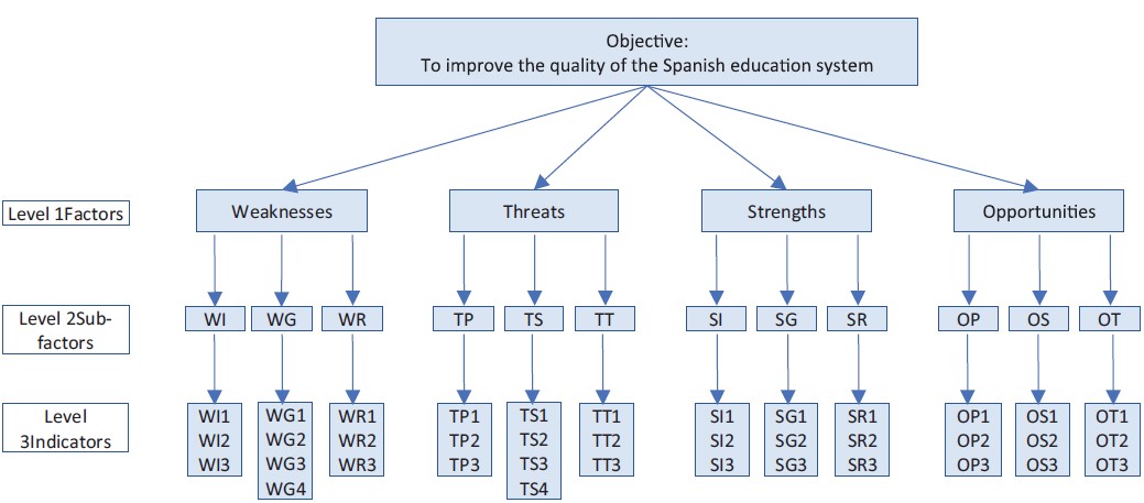 FIGURE III. Structure in hierarchical levels of the SWOT matrix