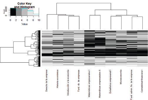 GRÁFICO III. Heatmap para las 10 asignaturas de formación básica en la Universidad Complutense de Madrid