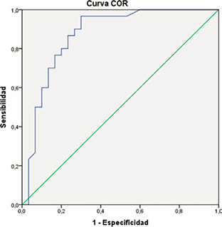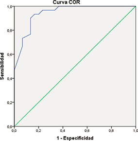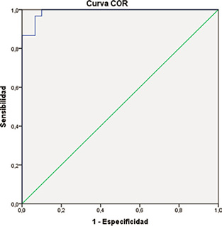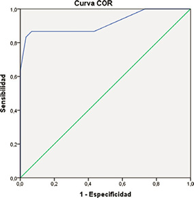 The differences between the groups (Table I) and the post hoc contrasts allow us to affirm that suppression affects the dyslexia group to a greater extent, which differs significantly from the control and simulator groups, while it does not seem to have any significant differential effect between the latter groups (see Table IV). The ASEDW variable reaches an area under the curve value of 0.91 (very good) which could be used as a clear indicator of simulation with a cut-off point of 3.5 with a sensitivity of 83.3% and a specificity of 96.7% (Figure V).