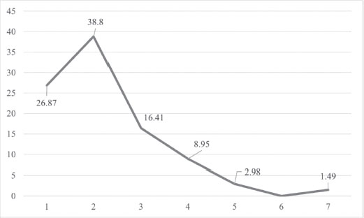 FIGURE II. Percentage distribution of Spanish education journals by number of thematic categories