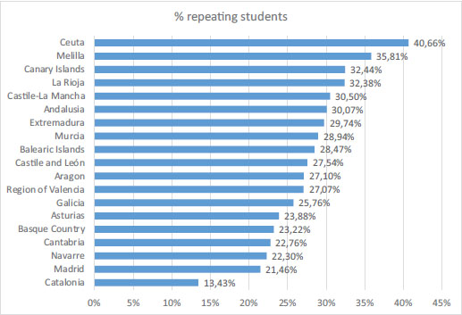 The percentage of repeating students also ranges widely in the different Autonomous Regions in Spain as shown in figure I for PISA 2018 data.