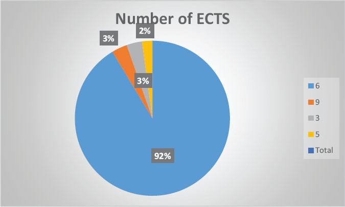 En general, existe una clara tendencia hacia asignaturas de 6 créditos ECTS (92% del total) (Figura III).