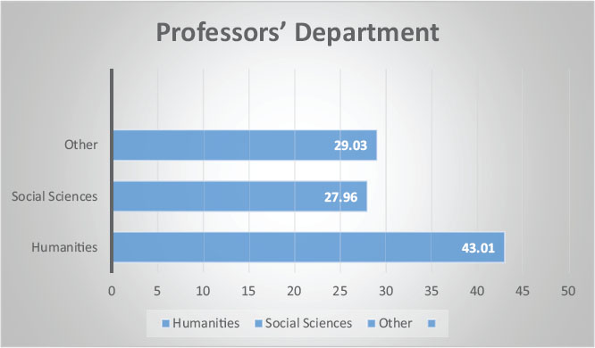 A pesar de que el grado de Educación Primaria se imparte en la facultad de educación (ciencias sociales), el 43% del profesorado a cargo de estos cursos pertenece a departamentos de humanidades, mientras que casi el 28% forma parte de los departamentos de didáctica de lengua extranjera. El 29% restante, clasificado como “otros”, podría haber proporcionado información adicional sobre el tema (Figura VII). Sin embargo, en la mayoría de estos casos, no se especificó el departamento encargado de estos cursos en la guía docente.