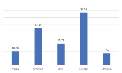 Source: Compiled by the authors. Note: this figure represents the percentage of publications per continent.