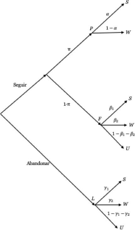 Más adelante, el esquema propuesto por Robert Mare adquirirá su plasmación micro-económica en el trabajo de modelización matemática emprendido por Richard Breen y John H. Goldthorpe (1997). Estos propusieron un modelo de ordenación de probabilidades en la cual los efectos secundarios se derivaban de la cantidad de aversión relativa al riesgo mostrada por los alumnos y sus familias. En la Figura I, se expone la construcción del árbol de decisión creado por ambos autores. Estos asumían que todas las familias evitaban que sus hijos cayeran más debajo de su posición social evitando siempre la movilidad de tipo descendente (Goldthorpe & Breen, 2010). Su teoría se basaba en una función de utilidad en la se computaban costes, beneficios y probabilidades subjetivas de éxito. Según estos autores, todos los estudiantes y sus familias aspiraban a llegar lo más lejos posible en el sistema educativo ya que con ello aumentaba las probabilidades de evitar la movilidad descendente y, en consecuencia, no difieren en sus actitudes hacia la escuela. Ahora bien, sí difieren en sus recursos y su rendimiento, de ahí, que sus elecciones en el terreno educativo fueran distintas. Los alumnos y alumnas que poseían escasos recursos consideraban más arriesgada la vía universitaria mostrando así una mayor aversión relativa al riesgo que las clases más privilegiadas.