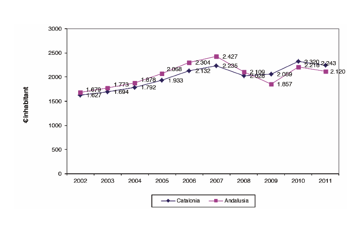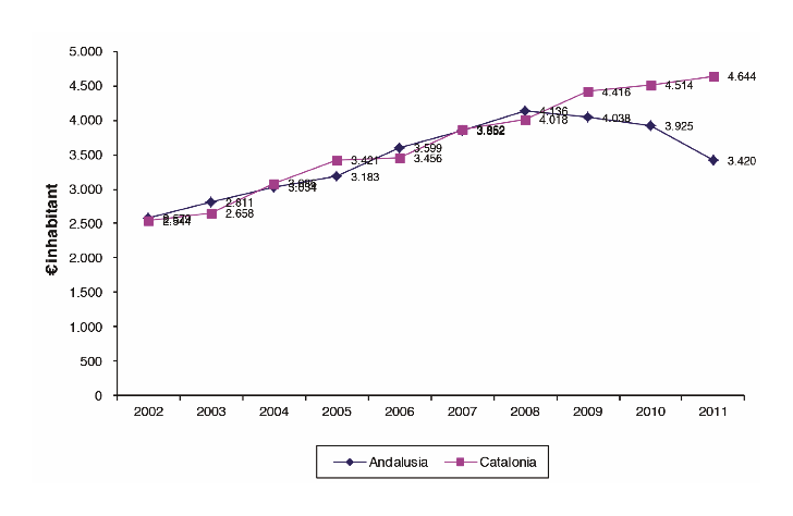 If the governments of Andalusia and Catalonia have made different decisions in relation to the provision of healthcare, this may be due to at least two reasons. One, the regional governments have provided these services expressing heterogeneous preferences for health output between AC (which supposedly represent the citizens who voted for them) towards a greater collective welfare. Two, the different behaviour of regional governments could be due to the characteristics of the financing model and its results, mainly the available per capita resources, their origin and the decisions that have been taken on them.