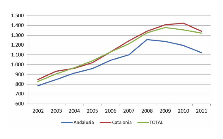 Source: The autors based on Ministerio de Sanidad, Servicios Sociales e Igualdad.