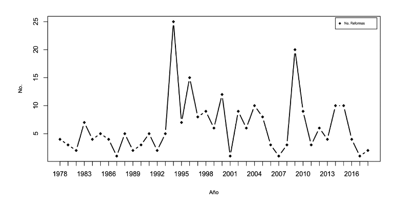 Número de reformas Las reformas se cuentan en función del número de cambios realizados en las dimensiones en cada año. |