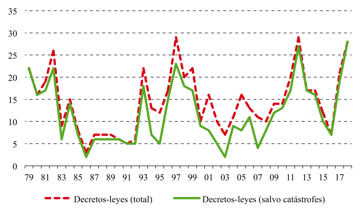 más básico es el número de decretos leyes aprobados, un parámetro muy frecuente en
